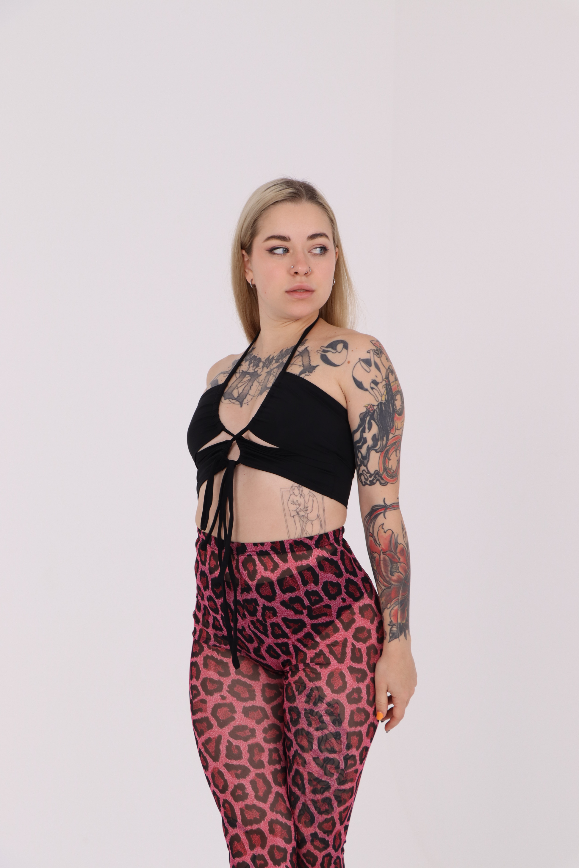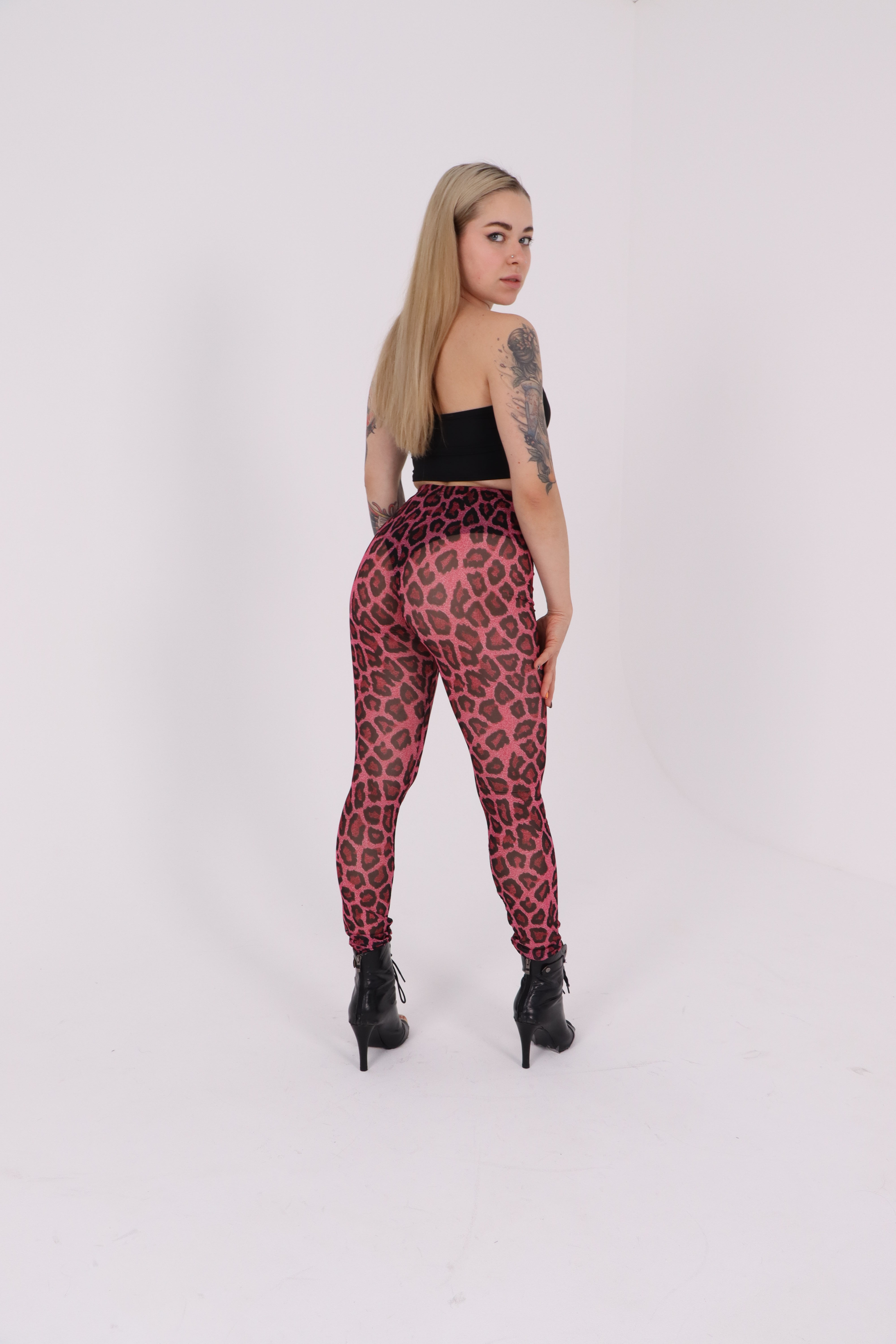 Pink leo mesh leggings — bold, stretchy and designed for statement looks. Featuring a crochet-inspired fishnet pattern with leo print accents, these leggings combine breathable comfort with a curve-enhancing fit. Perfect for festivals, stage wear or exotic dance practice, they add energy and confidence to every move.