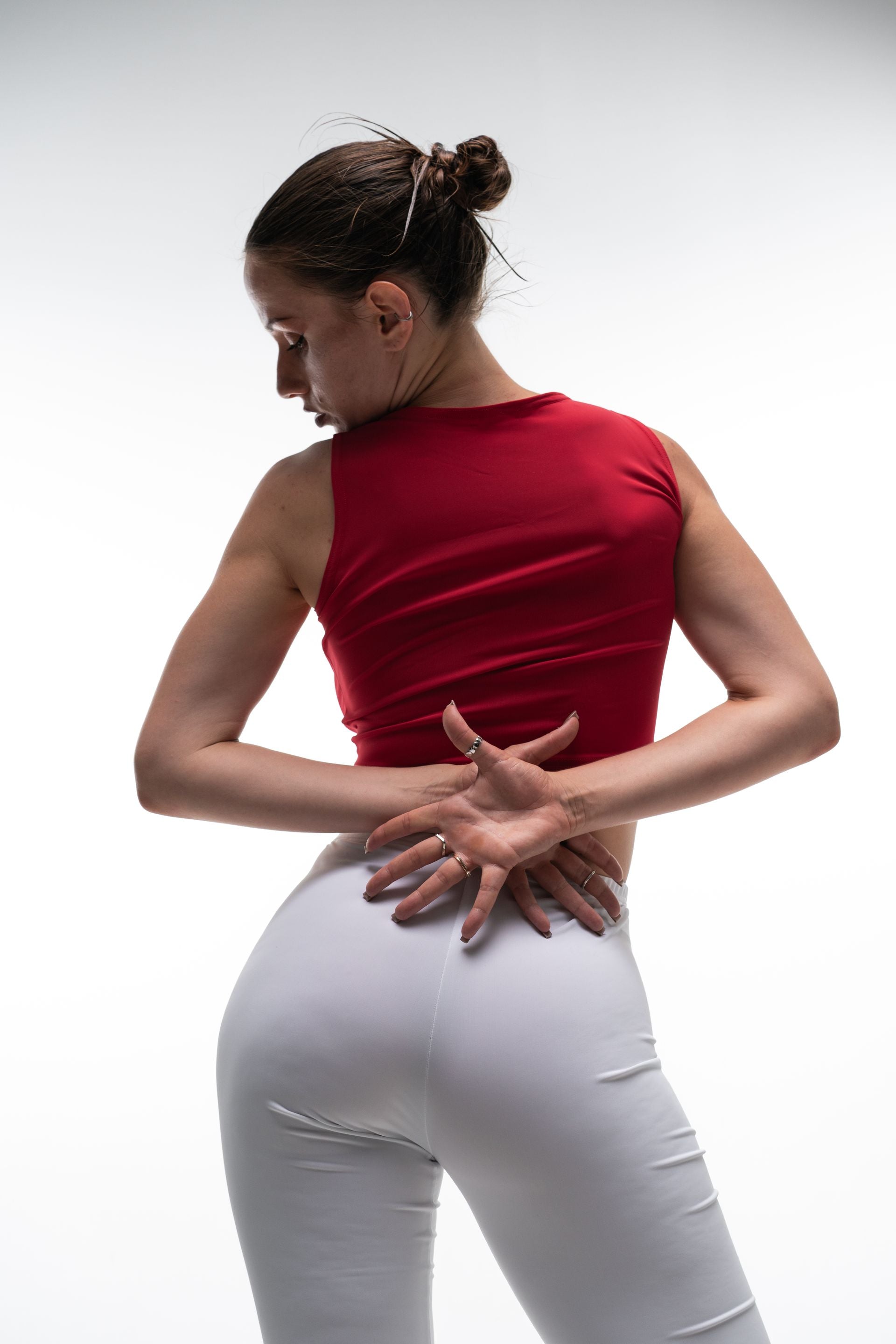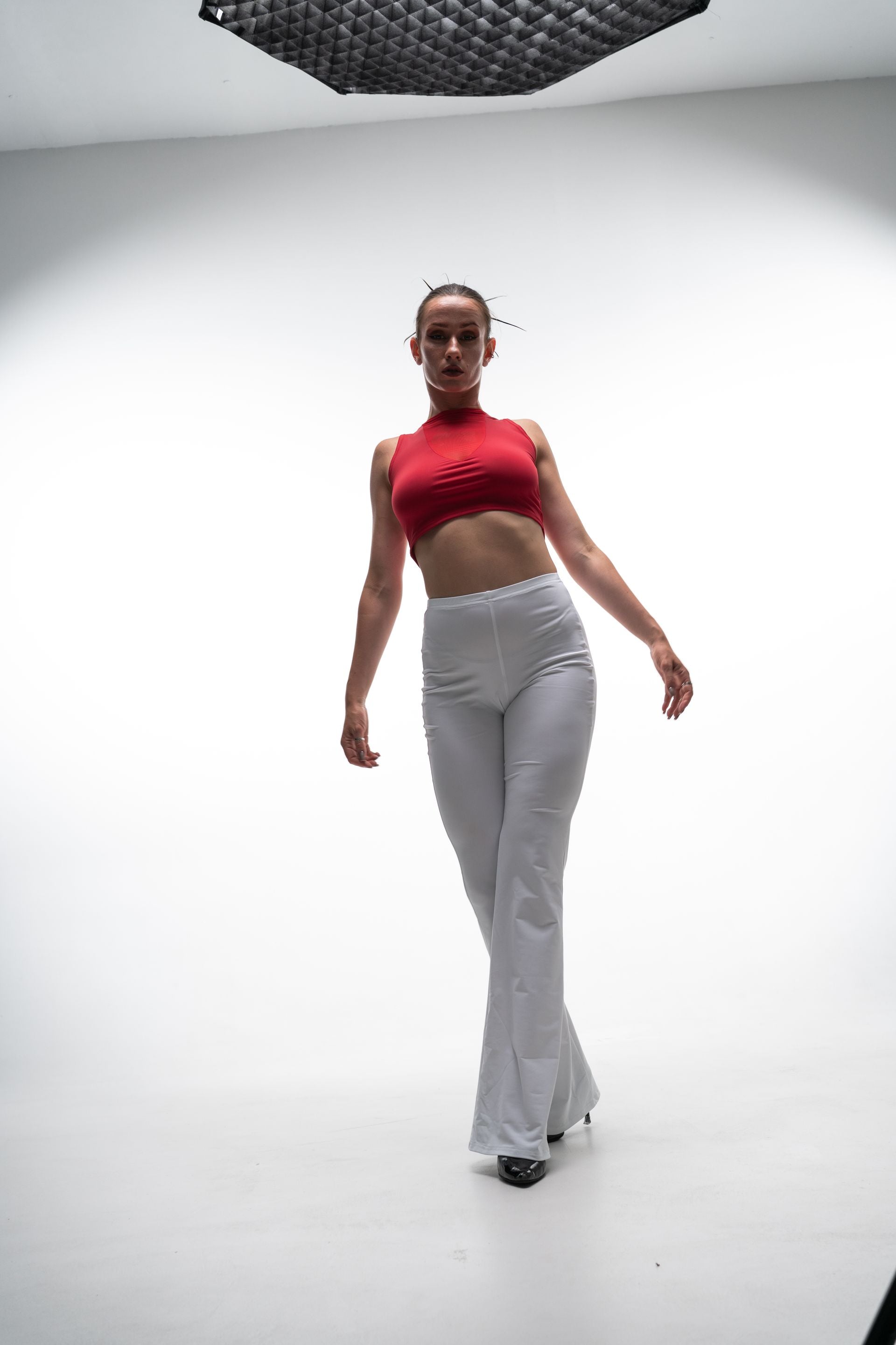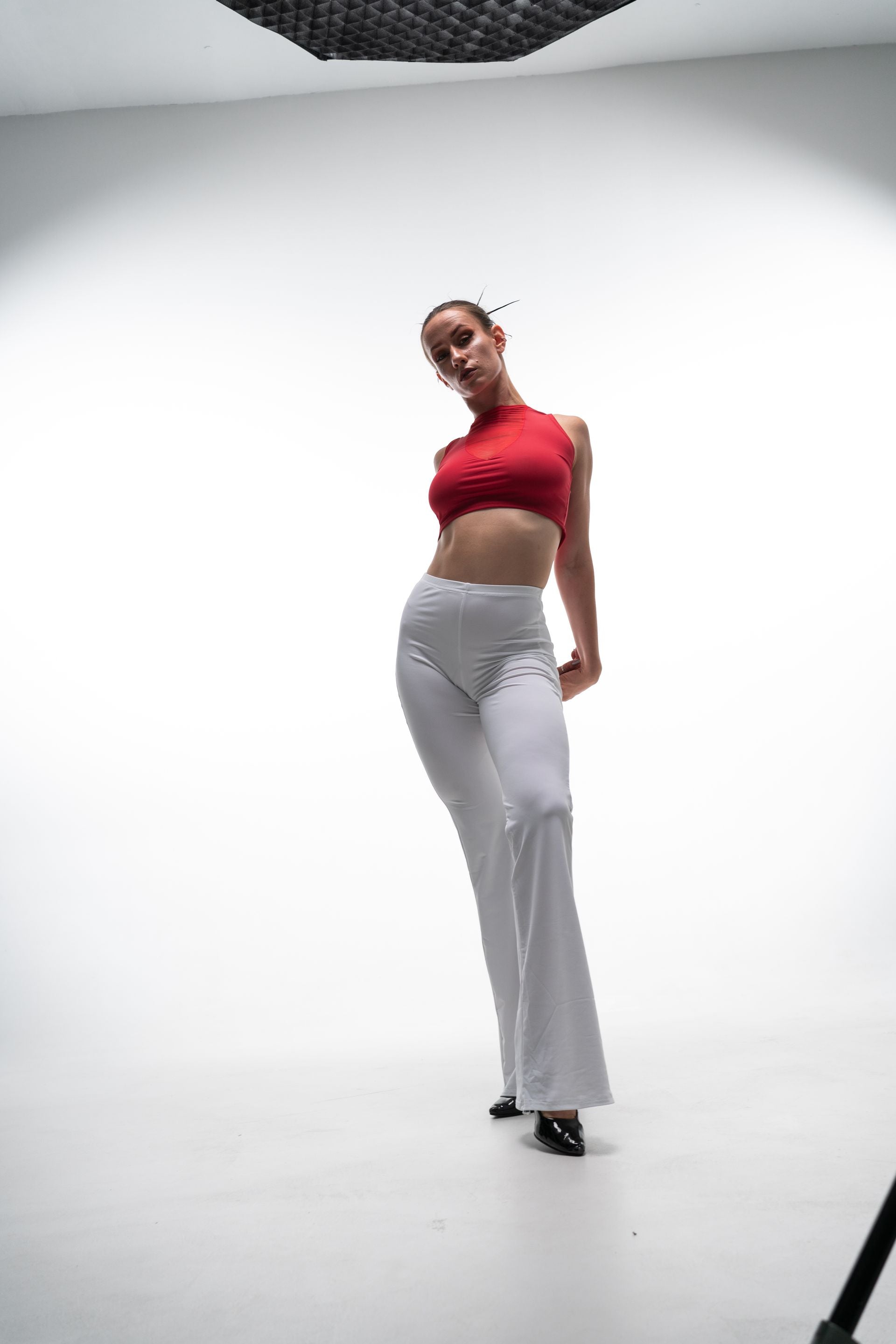 • Pairing with black or red high-waisted bottoms