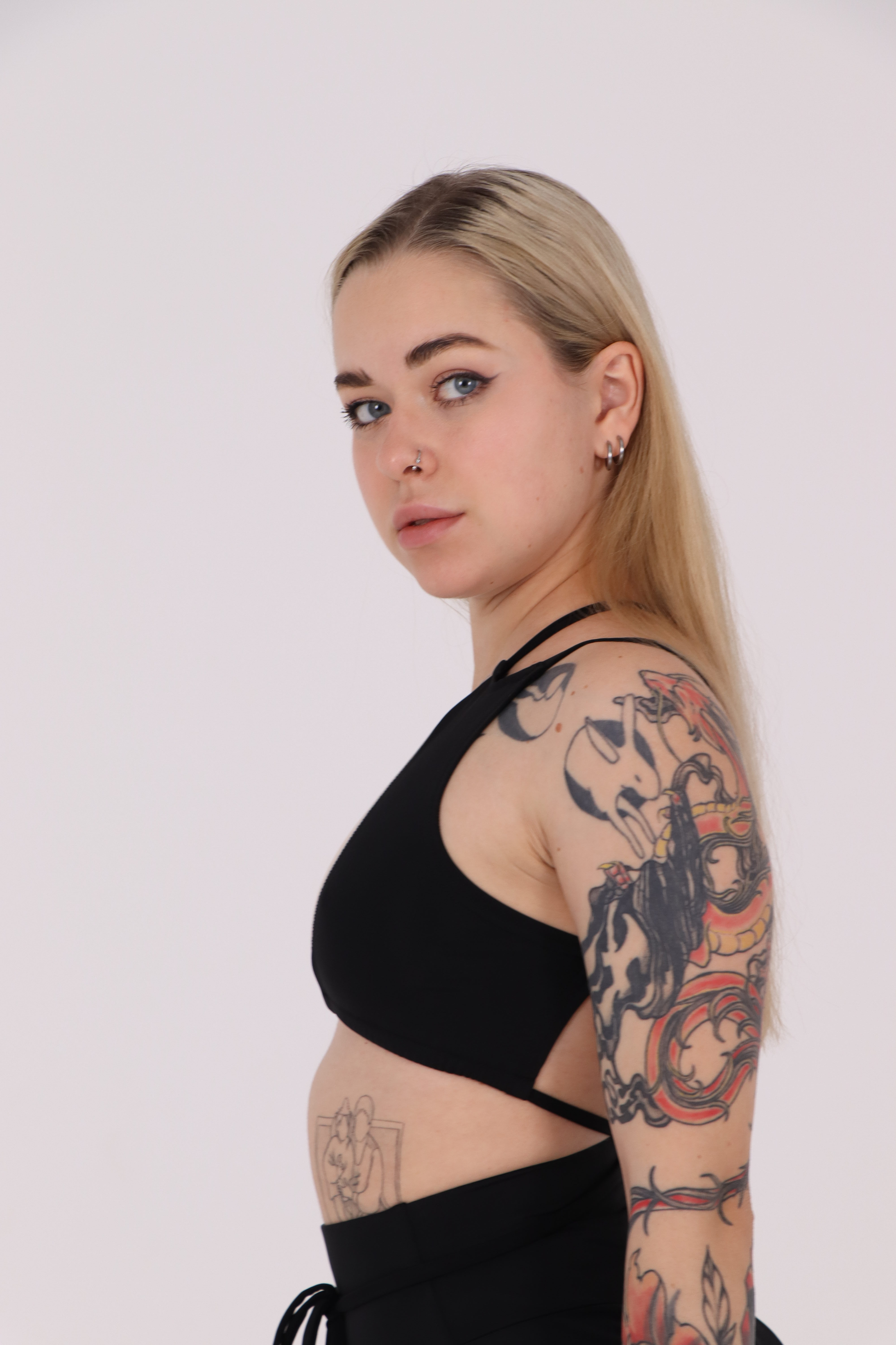 • Styling with high-waisted shorts, skirts or dance pants
